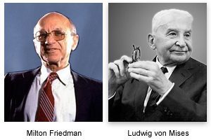 Sugli argomenti caratteristici come il salario minimo, le tariffe, o lo stimolo della spesa del governo, gli economisti Austriaci e quelli della Scuola di Chicago possono essere tranquillamente accumunati come economisti di “libero mercato”. Tuttavia sul denaro e in altre aree — in particolare argomenti di pura teoria economica — le due scuole sono completamente differenti. Da economista Austriaco, incoraggerei i fan del libero mercato che conoscono solo Friedman ad aggiungere alle loro letture Ludwig von Mises e Murray Rothbard.