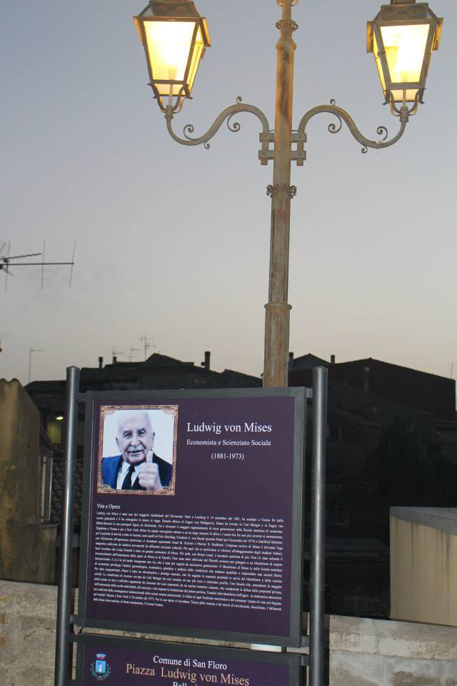 In un’atmosfera di grande partecipazione è stata inaugurata, e riaperta al pubblico dopo i lavori di ristrutturazione, la nuova piazza nel Comune di San Floro (CZ), che la locale amministrazione, guidata dal sindaco Teresa Procopio, ha deciso di dedicare a Ludwig von Mises, l’insigne economista austriaco, che per più di cinquant’anni è stato il prodigo maestro di generazioni di studiosi, a cui ha insegnato i principi del liberalismo classico.